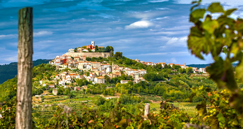 Ausgehend von Momjan wandern Sie inmitten von grünen Feldern, Olivengärten und Weingärten nach Brtonigla. Brtonigla vereint die typisch ländliche istrische Küche mit der mediterranen Meeresküche. Sehenswert sind hier sakrale Bauwerke wie die Pfarrkirche des Hl. Zenon. Ebenfalls einen Besuch wert ist die Höhle Mramornica.