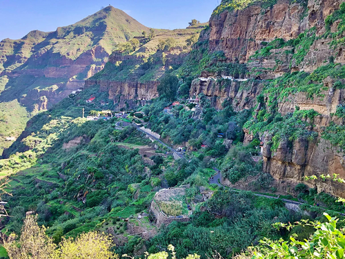 In nördlicher Richtung wandern Sie bergau, bis Sie auf Markierungen des so genannten „Camino de Santiago de Gran Canaria“ stoßen. Diesem Weg folgen Sie durch die Schlucht Barranco de Vicentillos und weiter bis ins Tal der Ureinwohner mit der Nekropole von Arteara und unzähligen kleinen Plantagen mit tropischen Bäumen. Von dort geht es mit dem Taxi nach San Bartolomé.