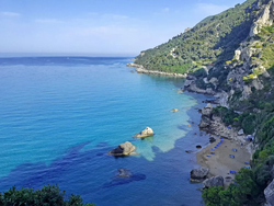 Ihre heutige Etappe beginnt am Strand und führt auf alten Hirtenpfaden zum Dorf Lakones. Von hier aus hat man einen schönen Blick auf das türkisfarbene Wasser und die Buchten von Paleokastritsa. Nutzen Sie die Gelegenheit für einen kurzen Abstecher zu den Ruinen einer byzantinischen Burg, bevor Sie der Weg wieder hinunter zum Meer und zum langen Sandstrand von Agios Georgios Pagon leitet, Ihrem heutigen Etappenziel.