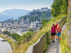 In der Ferne sieht man bereits die Berge, an denen Sie in den nächsten Tagen vorbeiwandern werden. Gemütlich spazieren Sie hinab nach Salzburg, wo Sie prächtige Kirchen, schöne Gassen und Plätze vorfinden und sich am besten bei einer Portion Salzburger Nockerln stärken. Empfehlenswert ist ein Abstecher zur Wallfahrtskirche Maria Plain, die hoch über Salzburg thront.